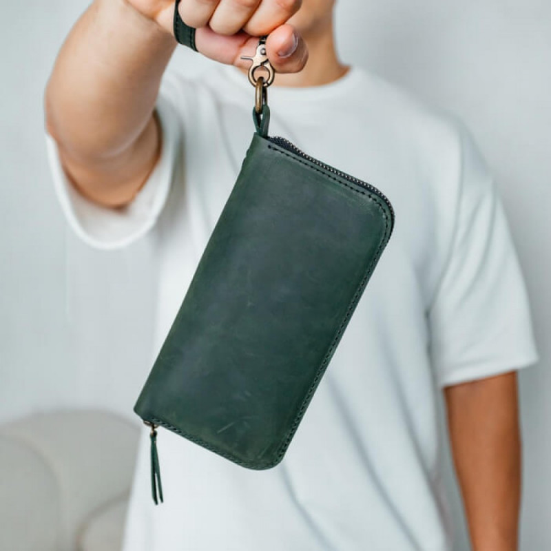 Ми використовуємо високоякісні матеріали, які забезпечують тривале використання. Цей зелений довгий шкіряний гаманець «любить» дотики та носіння. Згодом отримає патину і виглядатиме повним характеру та індивідуальності.