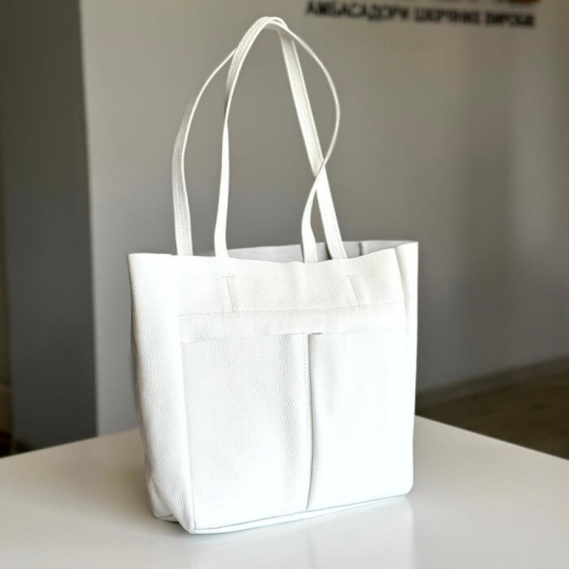 Ця модель білої сумки Юта ідеально підходить для будь-яких ситуацій - від роботи і офісу до подорожей. Завдяки своїй великій вмісткості, вона легко вмістить ваш гаманець, ключі, телефон, косметику, окуляри та навіть контейнер з обідом. Ви не тільки будете мати все необхідне під рукою, але й будете виглядати стильно та елегантно завжди.